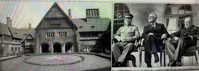 Schloss Cecilienhof Potsdam Foto: v.l. Josef Stalin, US-Präsident Franklin Roosevelt, Premier Winston Churchill