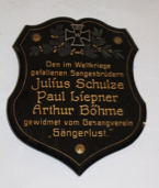 Ehrentafel für die im Ersten Weltkrieg gefallene Sangesbrüder
